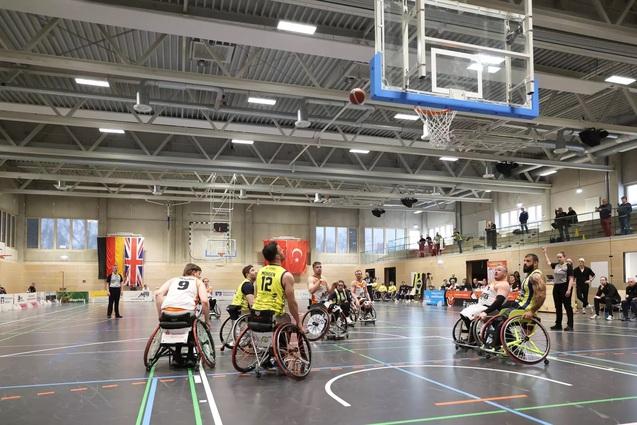 Zwei Tage Rollstuhlbasketball-Euro-Spektakel im "Fuchsbau" in der Sporthalle Sophienschule. Foto: Lars Kaletta