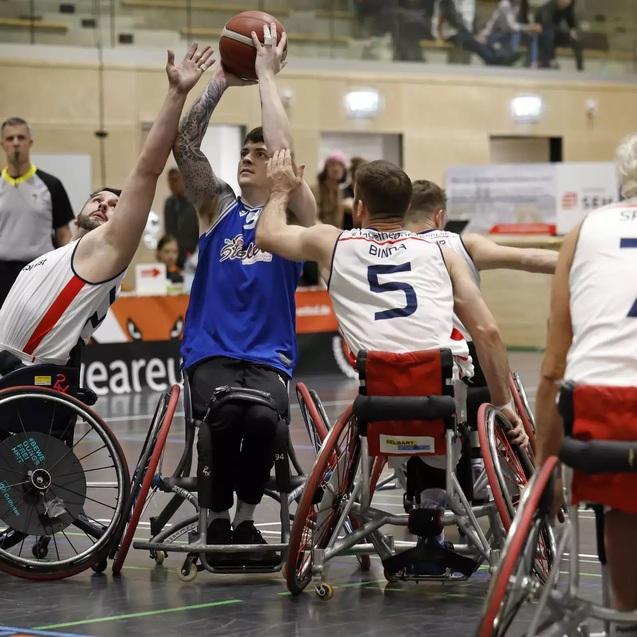 Zwei Tage Rollstuhlbasketball-Euro-Spektakel im "Fuchsbau" in der Sporthalle Sophienschule. Foto: Lars Kaletta