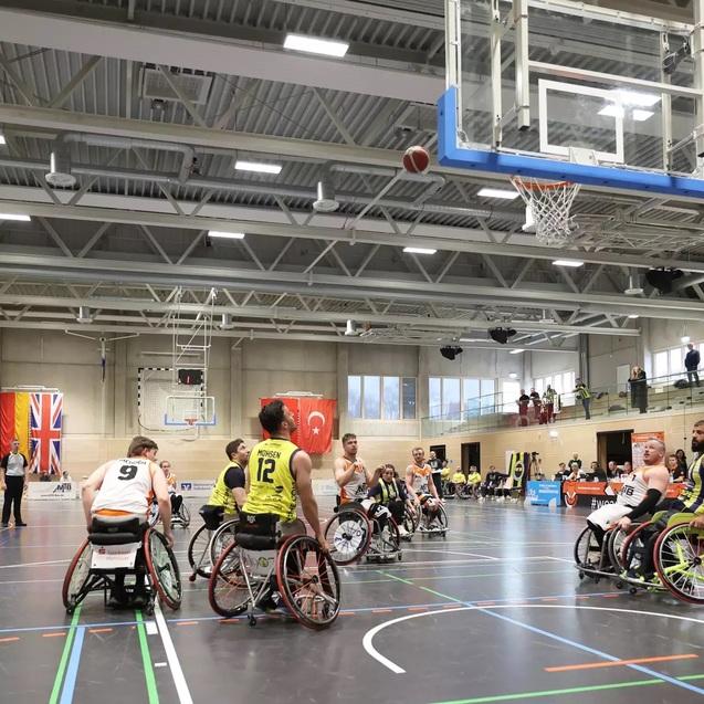 Zwei Tage Rollstuhlbasketball-Euro-Spektakel im "Fuchsbau" in der Sporthalle Sophienschule. Foto: Lars Kaletta